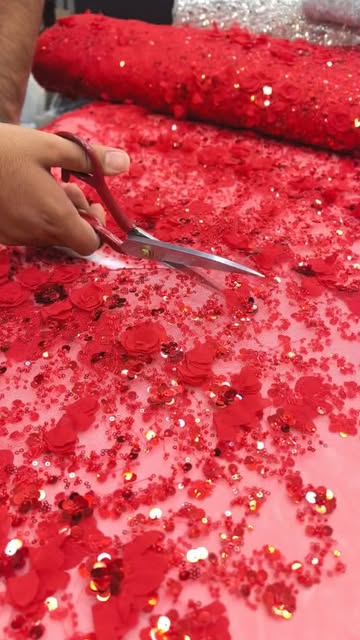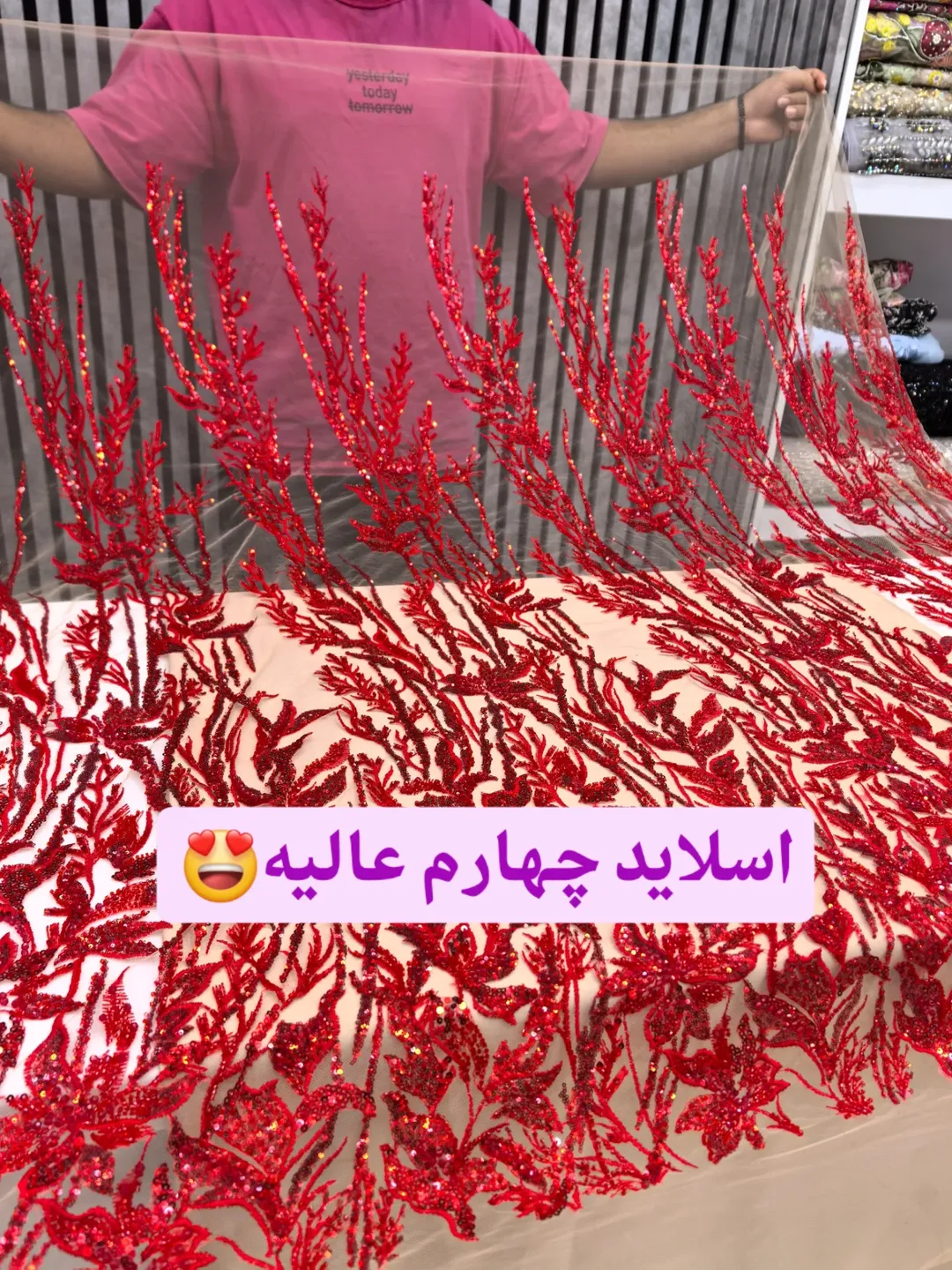 پارچه دانتل فرانسه منجق و مروارید دوزی